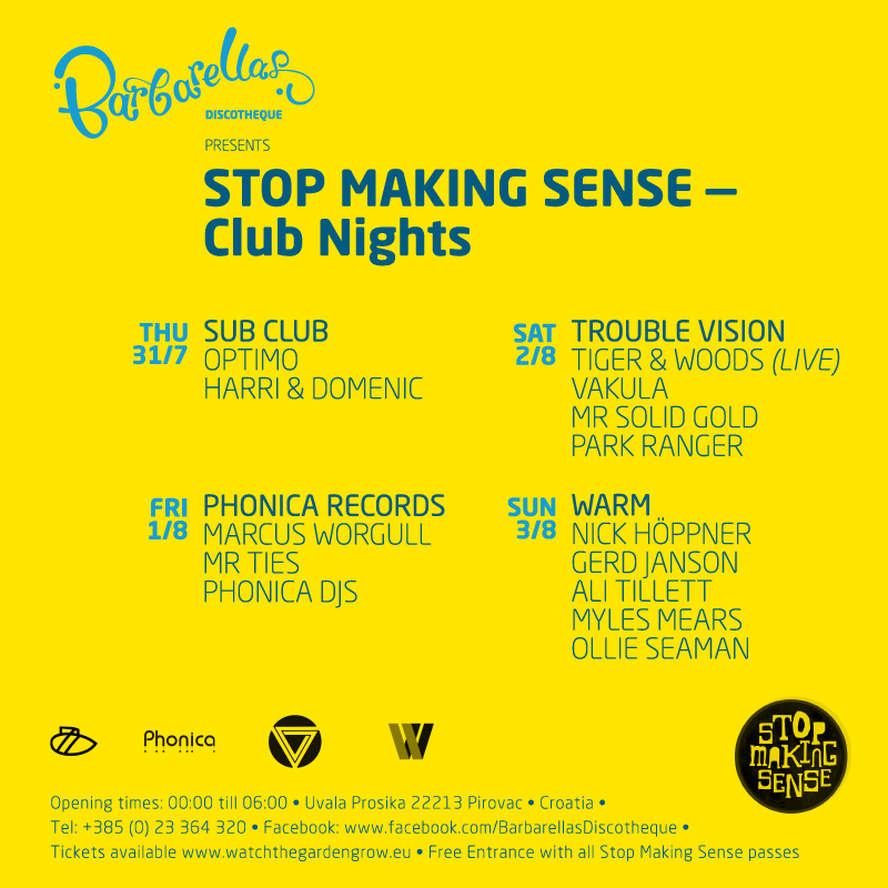 Nick and I will playing b2b as Phonica DJs at Stop Making Sense in Tisno, Croatia. We play 12-2 at the legendary Barbarella’s on Friday 1st August!