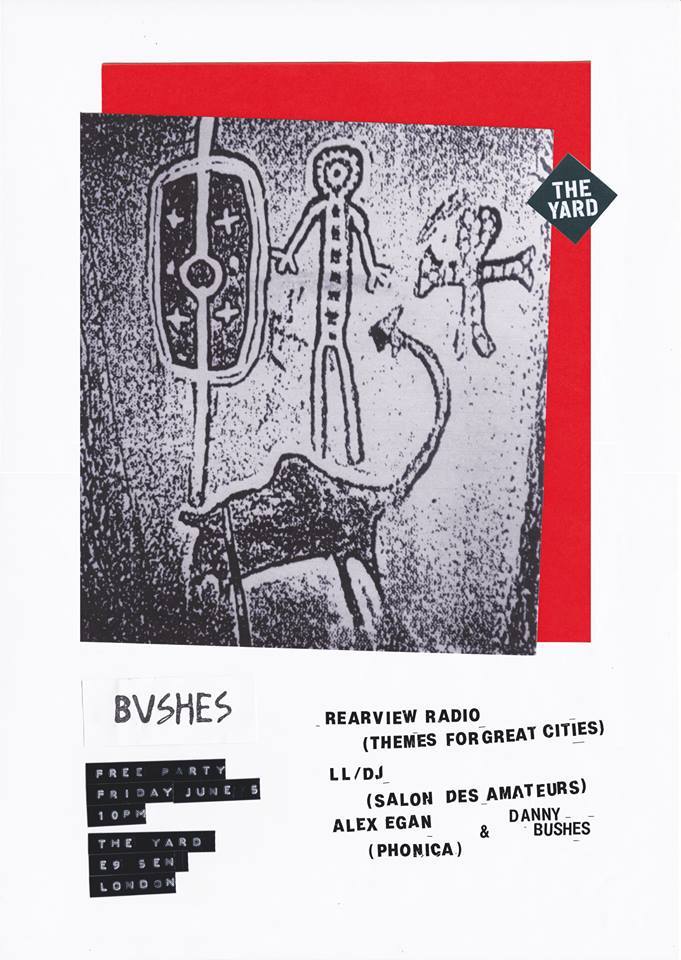 Bushes is movin’ up the road for our first get down at The Yard. We’ve been to a bunch of great parties at this spot over the last few months so were hyped to be doing our thing in Hackney Wick.