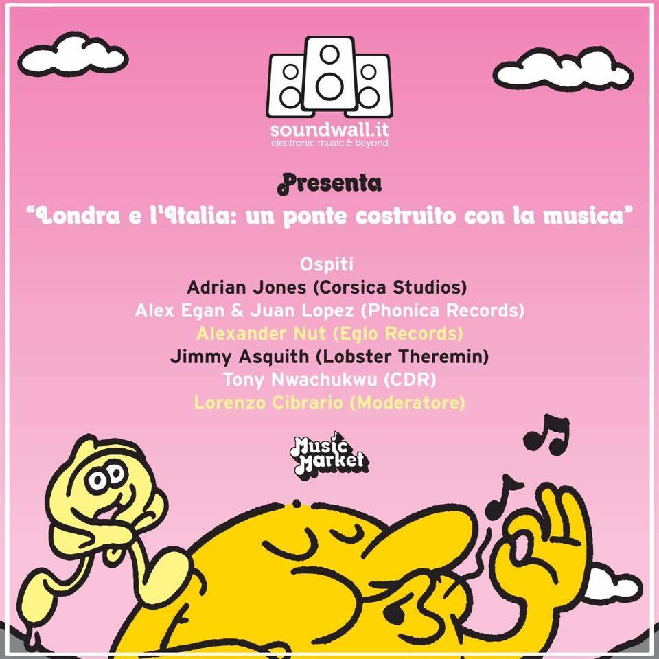 Soundwall presents “London and Italy: A bridge built with music” with: Adrian Jones (Corsica Studios), Alex Egan & Juan Lopez (Phonica Records), Alexander Nut (Eglo Records), Jimmy Asquith (Lobster Theremin), Tony Nwachukwu (CDR HQ), Lorenzo Cibrario (moderator).