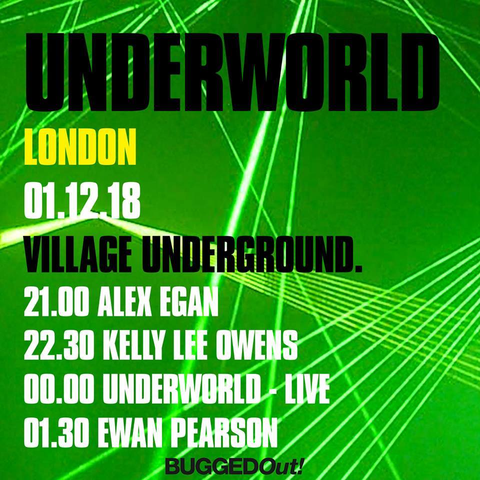 Underworld & more at Village Underground 28 November 2018 • Events 01.12.18 Bugged Out! present Underworld at Village Underground Underworld – LiveEwan PearsonKelly Lee OwensAlex Egan FB Event Dice Event RA Event Share this: Click to share on Facebook (Opens in new window) Facebook Click to share on Bluesky (Opens in new window) Bluesky Click to share on Threads (Opens in new window) Threads Click to share on X (Opens in new window) X