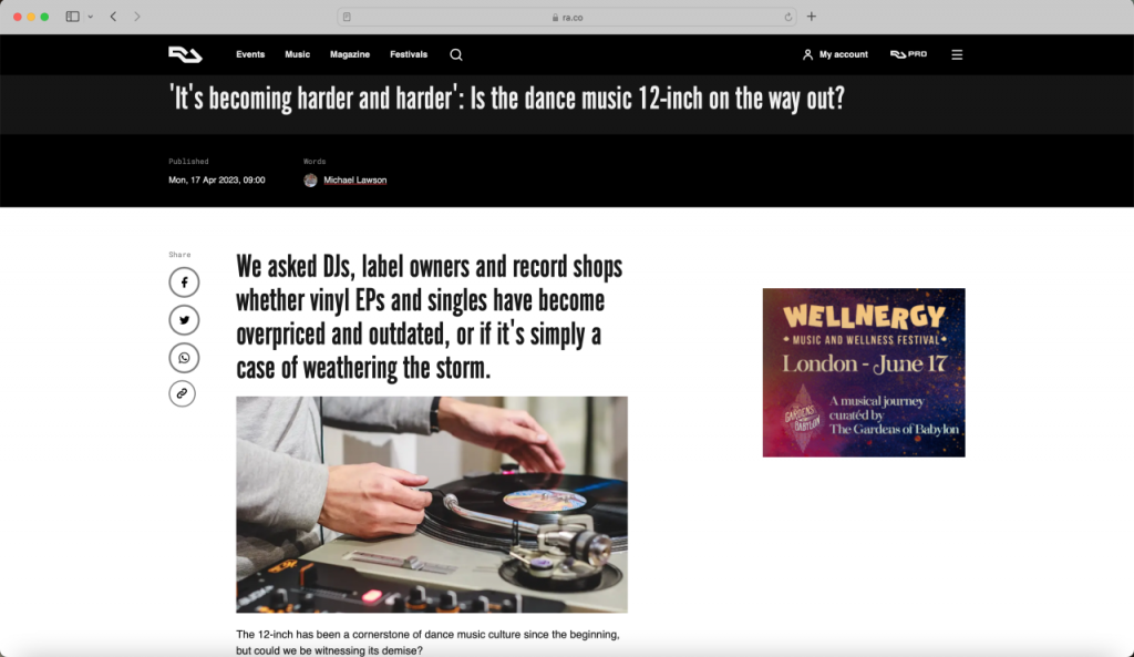 I recently had a chat with Resident Advisor on the current vinyl manufacturing situation. Here’s the full interview: