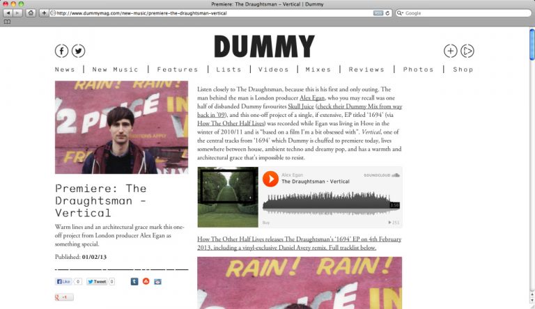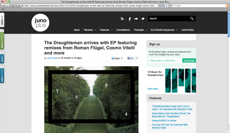 The Draughtsman ‘1694 EP’ Juno Plus feature 9 October 2012 • Other, Press • Features, The Draughtsman
